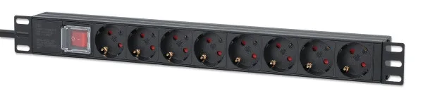 230V razvodni PDU panel 19″/1U sa 8 utičnih mesta, prekidačem i kablom 1.8m sa utikačem (PDU-8S-1U)